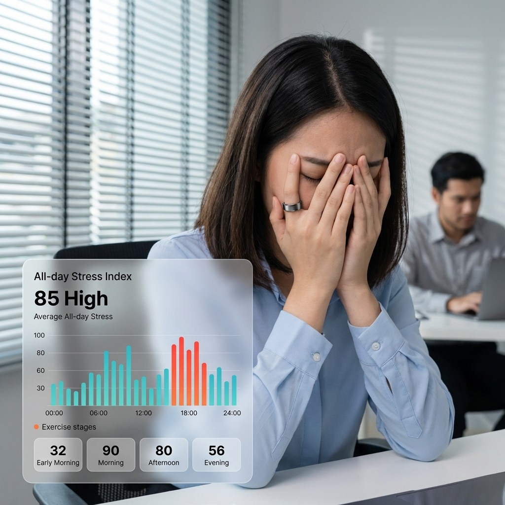 Stay aware of your stress levels throughout the workday. Ionrix detects and tracks stressful moments, helping you recognize triggers and recover faster to maintain your well-being.